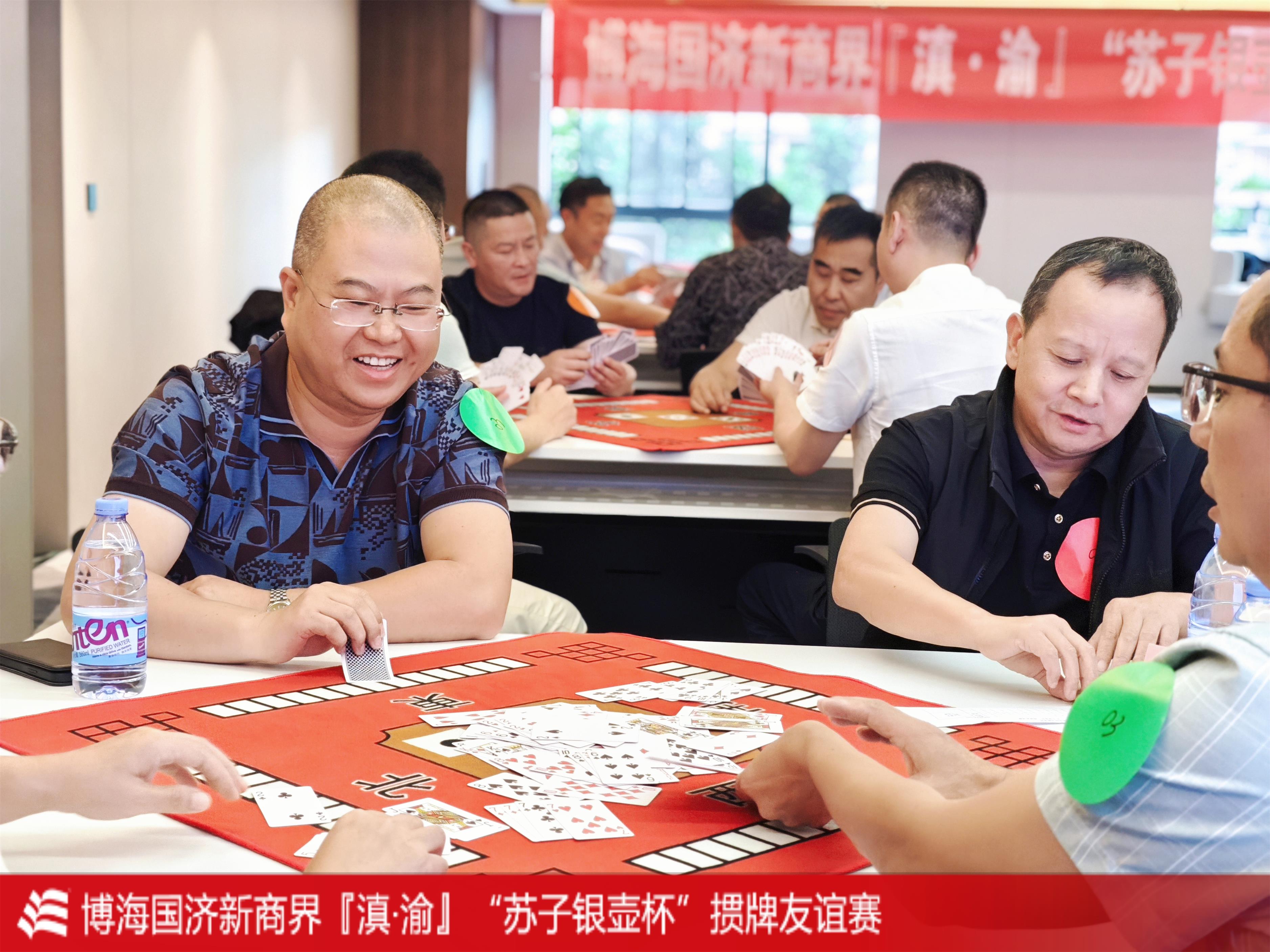次日,博海国济【滇·渝】“苏子银壶杯”掼牌友谊赛正式拉开帷幕,本次比赛由大成文化旅游(云南)有限公司冠名,贵州梁大师酒业有限公司与双陈普洱茶棋牌馆共同赞助。比赛开始,云南新商界掼蛋俱乐部王东旭会长以“苍山不墨千秋画,洱海无弦万古琴”表达对大理美景的赞叹,并预祝选手赛出风采;重庆新商界掼蛋俱乐部蔡月波会长则强调“友谊第一,比赛第二”,传递出以牌会友、共叙商缘的活动初衷。