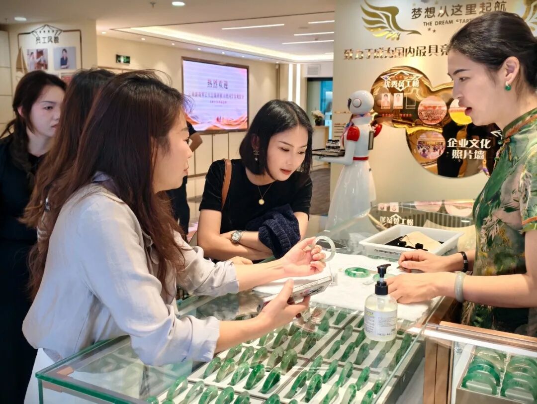 在工作人员的引导下,同学们参观了宝发珠宝的精品展厅。琳琅满目的珠宝首饰,不仅展现了精湛工艺与独特设计,更从每一处细节中透露出企业对品质的极致追求,获得大家的高度认可与赞赏。